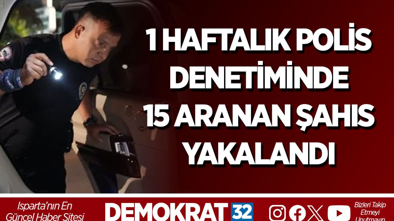 Isparta İl Emniyet Müdürlüğü ekipleri, 09–15 Kasım 2025 tarihleri arasında il genelindeki polis sorumluluk bölgelerinde geniş kapsamlı denetimler gerçekleştirdi. Bir hafta süren uygulamalarda toplam 20 bin 606 şahıs sorgulandı. Yapılan sorgulamalar sonucunda 15 aranan şahıs yakalanarak adli işlemleri başlatıldı. Ekipler ayrıca 11 bin 178 aracı kontrol ederek trafik güvenliğini artırmaya yönelik çalışmalar yürüttü. Denetimlerde 10 ruhsatsız silah ele geçirilirken, trafik kurallarına uymayan sürücülere ise cezai işlem uygulandı.