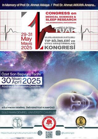 Süleyman Demirel Üniversitesi Uyku Bozuklukları Tanı, Tedavi, Araştırma ve Uygulama Merkezi ile Süleyman Demirel Üniversitesi Tıp Fakültesi tarafından, 29-31 Mayıs 2025 tarihleri arasında "Prof. Dr. Ahmet Akkaya 1. Tıp Bilimleri ve Uyku Araştırmaları Kongresi (Uluslararası Katılımlı)" düzenlenecektir.