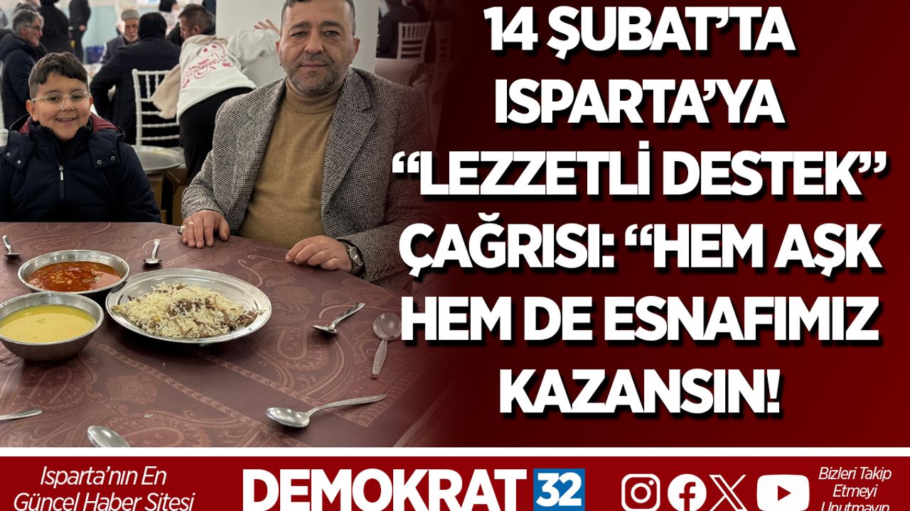 Isparta’da yaklaşan 14 Şubat Sevgililer Günü, bu kez farklı bir çağrıya sahne oldu. Isparta Kebapçı Lokantacı Pastacı Esnaf ve Sanatkârlar Odası Başkan Adayı Osman Özgür Tunçbilek, hem ekonomiye hem de aşka hitap eden sıra dışı bir mesajla kent sakinlerine seslendi.