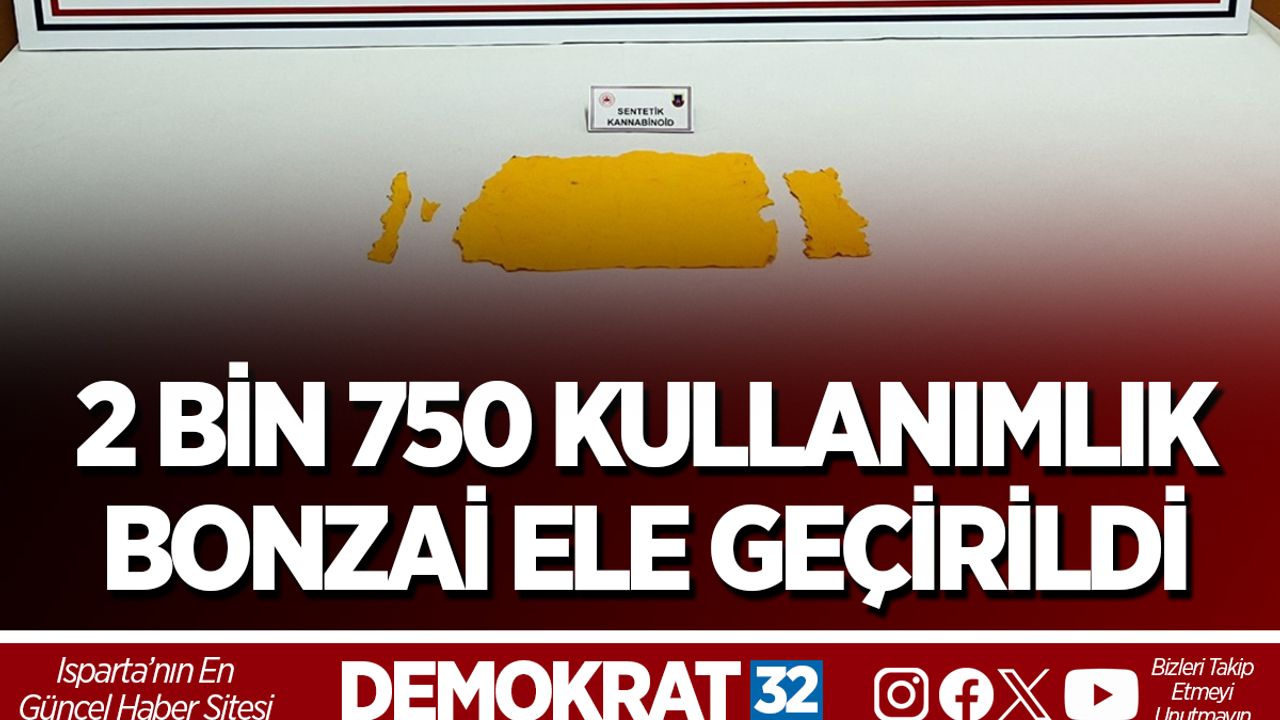 İstihbaratı değerlendiren Isparta İl Jandarma Komutanlığı ekipleri, Antalya’dan Isparta’ya uyuşturucu getiren bir şahsı yakaladı. Yapılan aramada 2 bin 750 kullanımlık bonzai maddesi ele geçirildi.