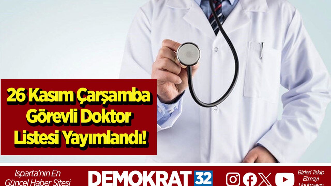 Isparta İl Sağlık Müdürlüğü 26 Kasım 2025 Çarşamba Isparta Şehit Yunusemre Devlet Hastanesinde görev yapacak doktorların listesini yayımladı. Bu listeye bakmadan doktora gitmeyin. Çarşamba günü hangi doktorlar çalışacak işte detaylar..