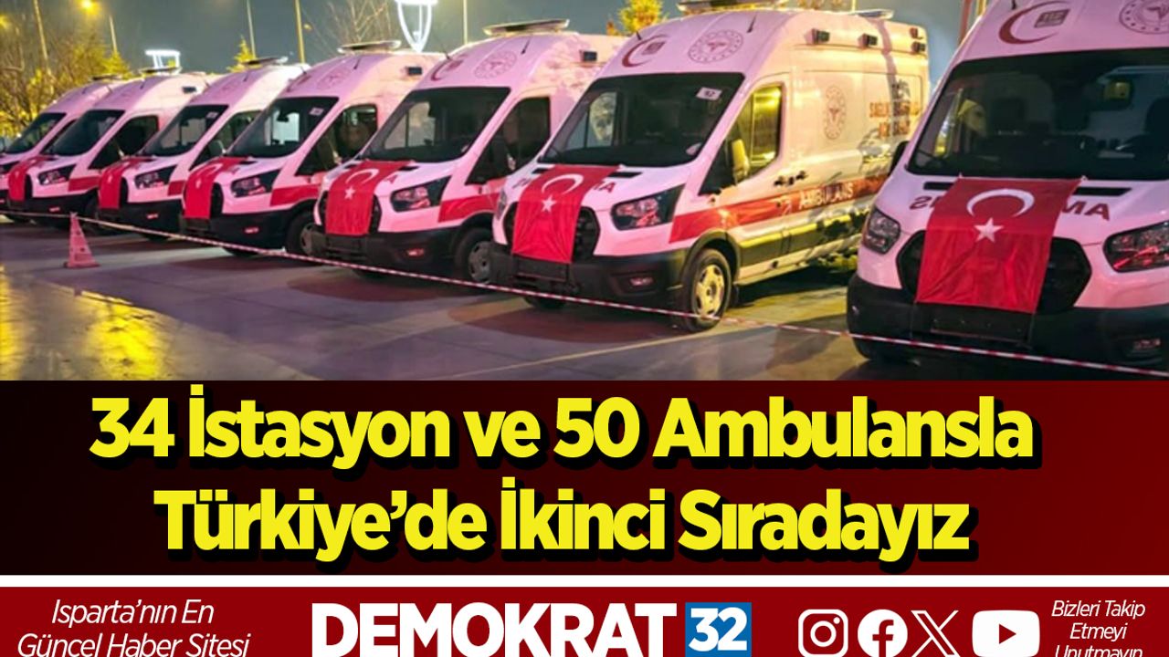 Isparta’da 9 yeni 112 Acil Sağlık Hizmetleri İstasyonu hizmete girerken, istasyon sayısı 34’e, ambulans sayısı 50’ye ulaştı. Kent, 112’nin olay yerine ulaşma süresinde Türkiye genelinde ikinci sırada yer alıyor. Yeni açılan istasyonlarla birlikte Isparta’da toplam 34 istasyon (Merkez 11, İlçeler 23) ile 7/24 kesintisiz hizmet veriliyor. Kent genelinde acil müdahale için görev yapan ambulans sayısı 50’ye ulaştı. Sağlık ekiplerinin sahaya intikal performansına da dikkat çeken İl Sağlık Müdürlüğü, Isparta’nın 112’nin olay yerine ulaşma süresinde Türkiye genelinde 2. sırada yer aldığını açıkladı. İl Sağlık Müdürü Dr. Serhat Küçükcoşkun, artan istasyon sayısı ve güçlü araç filosuyla Isparta’nın acil sağlık hizmetlerinde her yıl daha ileriye gittiğini belirterek, "Isparta, acil sağlık hizmetlerinde güçlü altyapısını her geçen gün daha da ileriye taşımaya devam etmektedir" dedi.