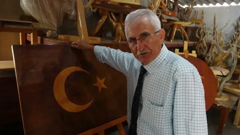 Isparta'nın Sütçüler ilçesi Çandır Köyü'nde yaşayan emekli ahşap ustası Mustafa Şahinkaya, doğadan topladığı ağaç figürlerini işleyerek sanata dönüştürüyor. 15 Temmuz şehitleri anısına yaptığı 246 parçalık Türk bayrağı eseri ise sergilerde büyük beğeni topluyor.