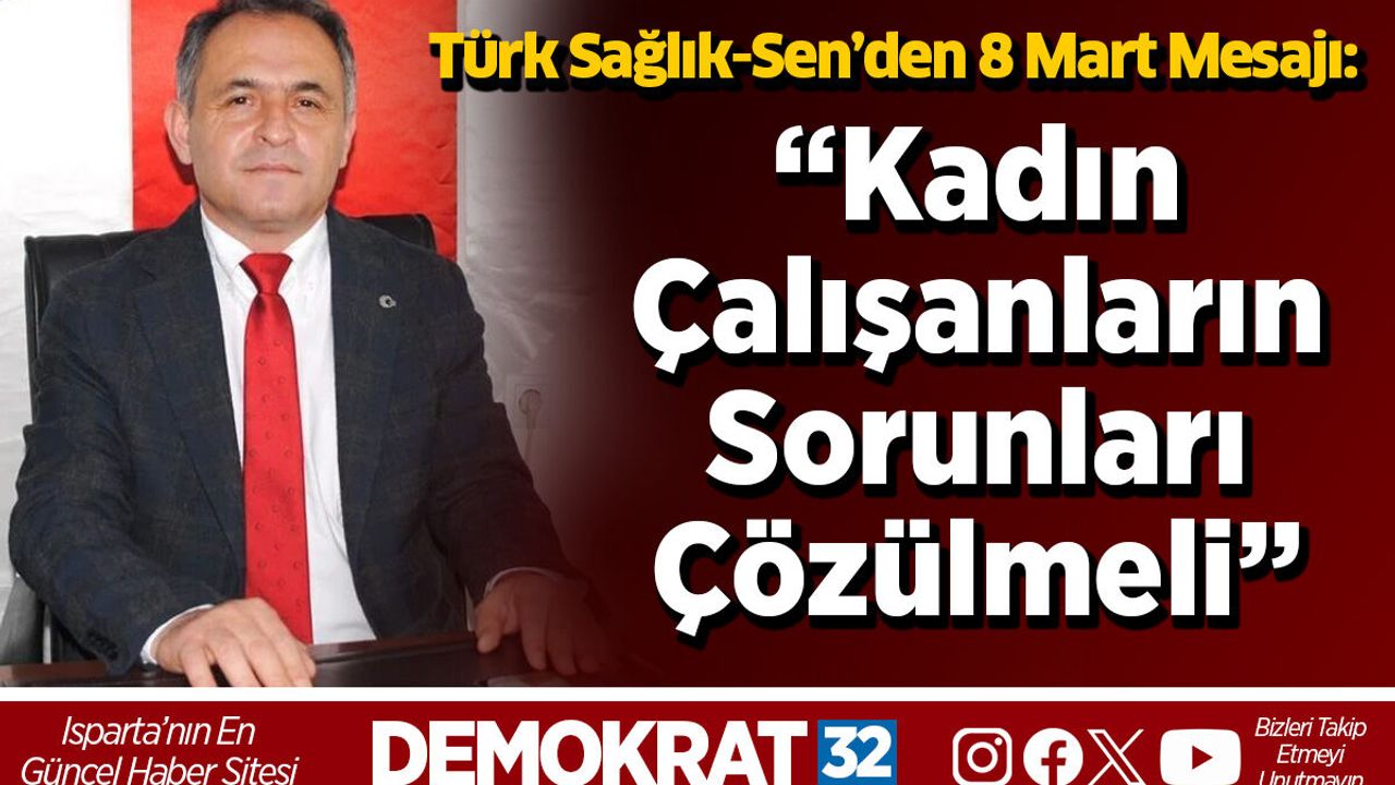 Türk Sağlık-Sen Şube Başkanı Hayrettin Çiçen, 8 Mart Dünya Kadınlar Günü dolayısıyla yaptığı açıklamada Türk kadınının tarih boyunca cesaret, fedakârlık ve vatan sevgisinin sembolü olduğunu belirterek kadın kamu çalışanlarının yaşadığı sorunlara dikkat çekti.