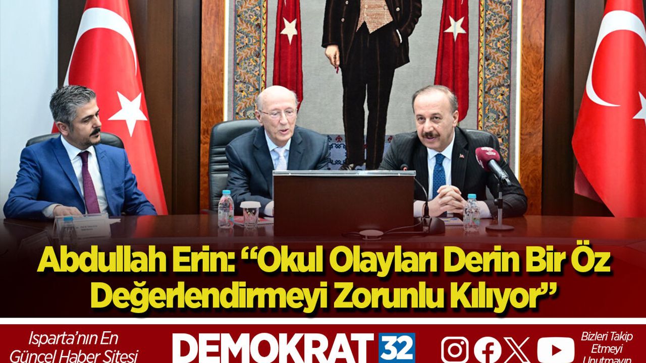 Vali Abdullah Erin, Isparta Valiliği'nde düzenlenen bir toplantı öncesinde son günlerde tüm yurtta derin bir üzüntüye yol açan okul olaylarına ilişkin kapsamlı değerlendirmelerde bulundu. Vali Erin, Isparta'da alınan somut tedbirleri aktarırken olayların yapısal ve manevi kökenlerine ilişkin önemli tespitlerini de kamuoyuyla paylaştı.