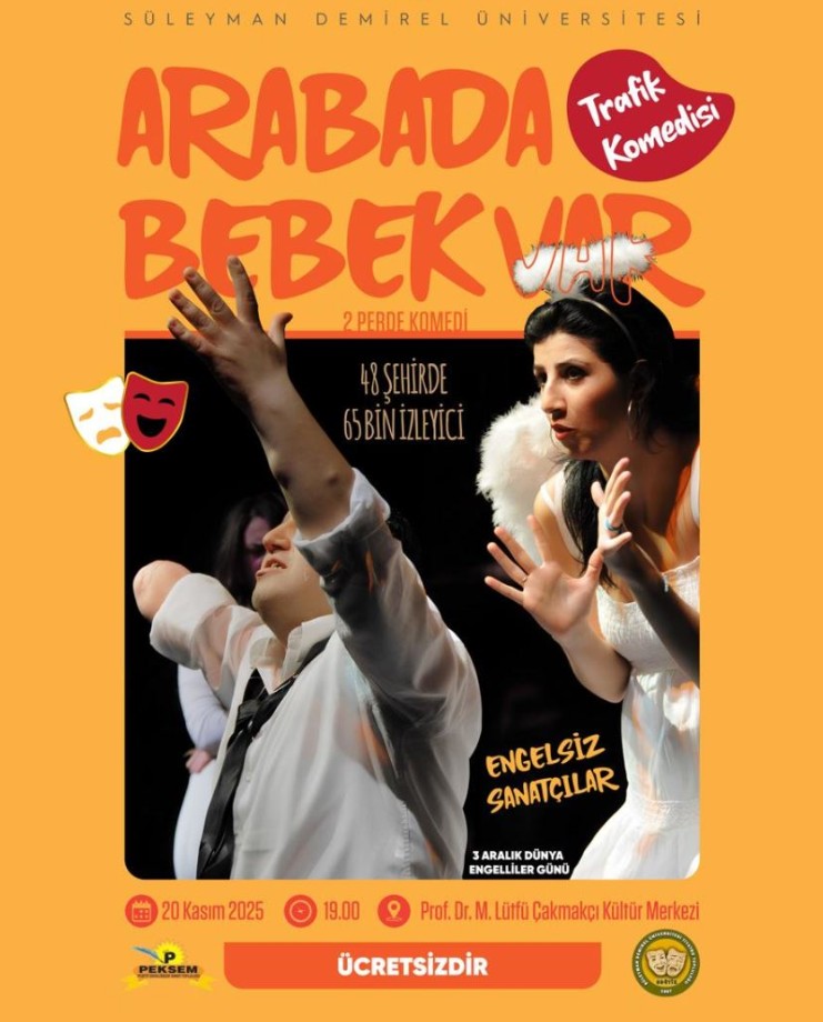 Pozitif Engelsizler Sanat Topluluğu (PEKSEM) tarafından hazırlanan “Arabada Bebek Var” adlı tiyatro oyunu, Süleyman Demirel Üniversitesi’nde tiyatroseverlerle buluşacak.