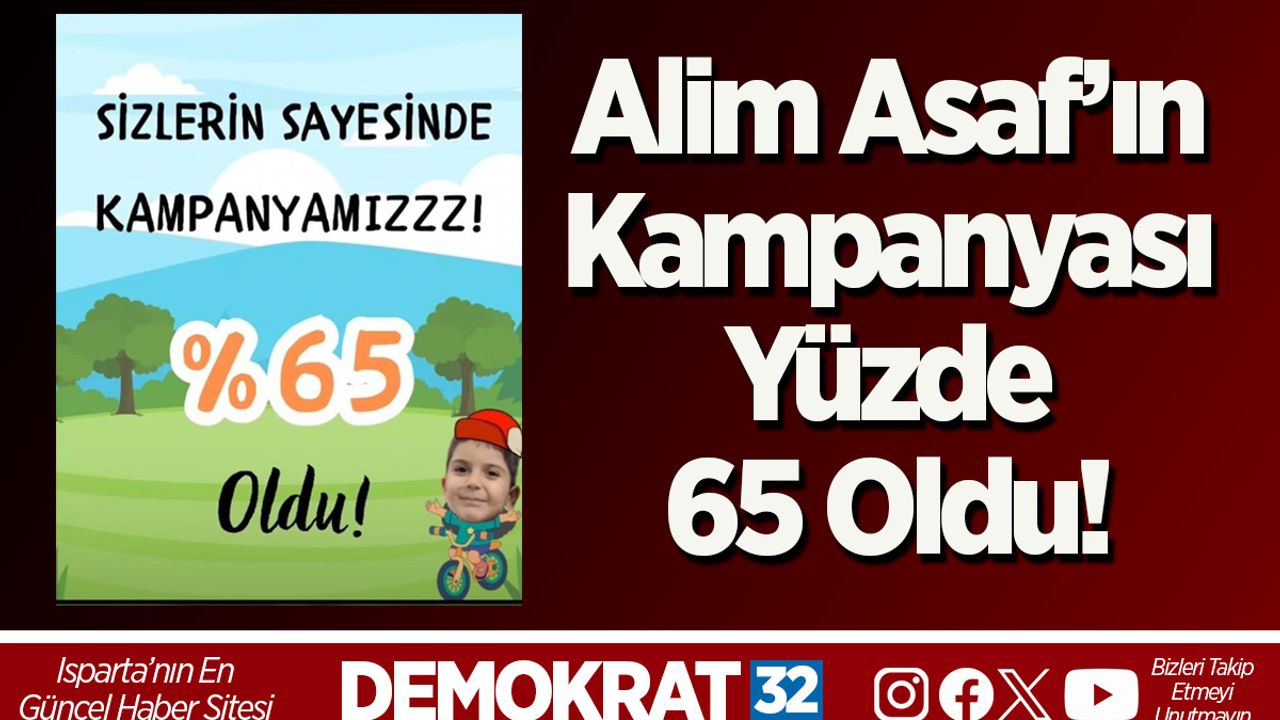 Isparta’da yaşayan SMA Tip 1 hastası 4,5 yaşındaki Alim Asaf için başlatılan yardım kampanyası vatandaşların değsteğiyle devam ediyor. Alim Asaf’ın yurt dışında uygulanan ve yüksek maliyetli olan tedavisine ulaşabilmesi için gönüllüler seferber olmuş durumda. Ailesi ve gönüllüler, her gün meydanda destek bekliyor. Kampanyada şu ana kadar gereken miktarın yüzde 65’i tamamlandı.