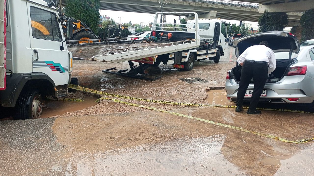Antalya’nın Aksu ilçesinde etkili şiddetli yağış sonrası Güzelyurt Mahallesi Serik Caddesi üzerinde su ve kanalizasyon yenileme çalışmasının ardından kapatılan çukurlarda çökme meydana geldi. Belediye otobüsü ve birkaç araç yolda oluşan çukura saplandı. Araçlar, çekici yardımıyla uzun uğraşlar sonucu kurtarıldı.