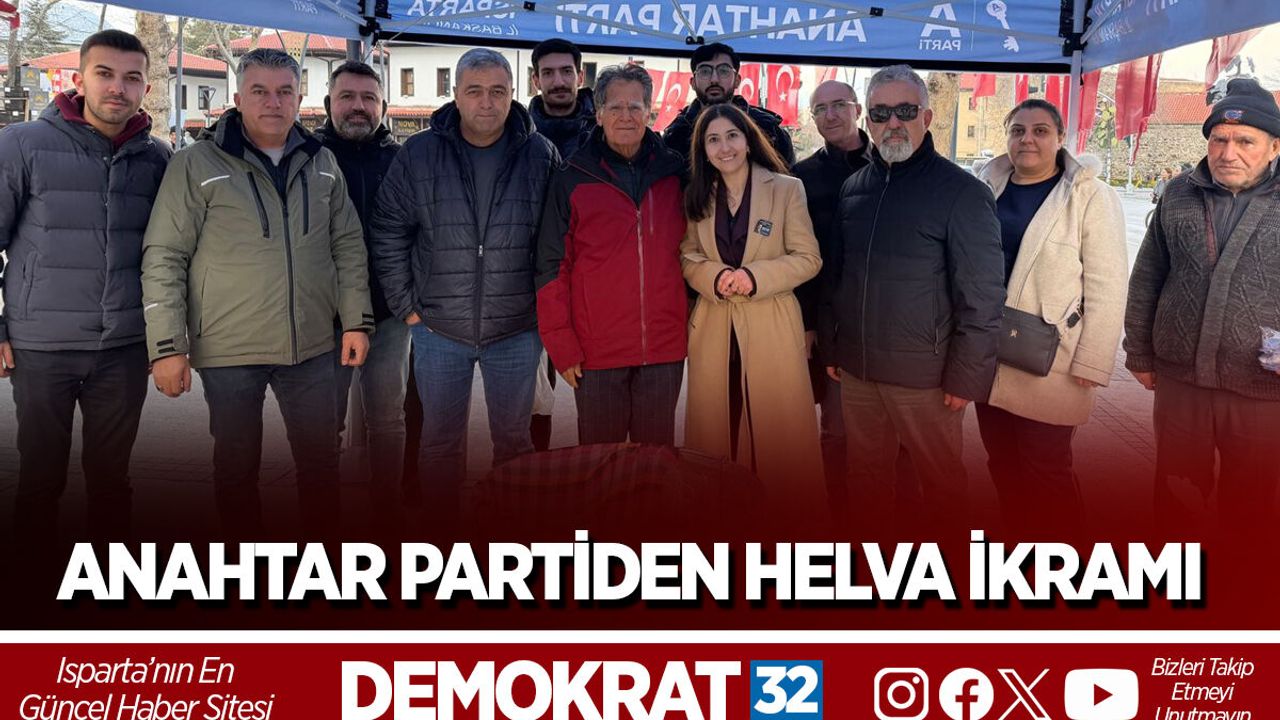 Anahtar Parti Isparta İl ve Merkez İlçe Teşkilatı Ramazan ayı nedeni ile vatandaşlara helva ikramında bulundu. Yoğun bir katılımın olduğu etkinlik, Anahtar Parti Ekonomi Politikalarından Sorumlu Genel Başkan Yardımcısı Prof. Dr. Recep Kök’ün katılımlarıyla gerçekleşti.