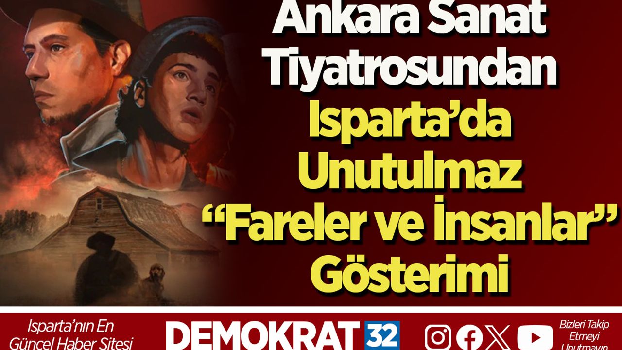 Ankara Sanat Tiyatrosu’nun dünyaca ünlü eser “Fareler ve İnsanlar” uyarlaması, Isparta Belediyesi Kültür Merkezi Lavanta Salonu’nda tiyatro severlerle buluştu. Sanatseverlerin yoğun ilgi gösterdiği oyun, salonu tamamen dolduran izleyicilerden tam not aldı.