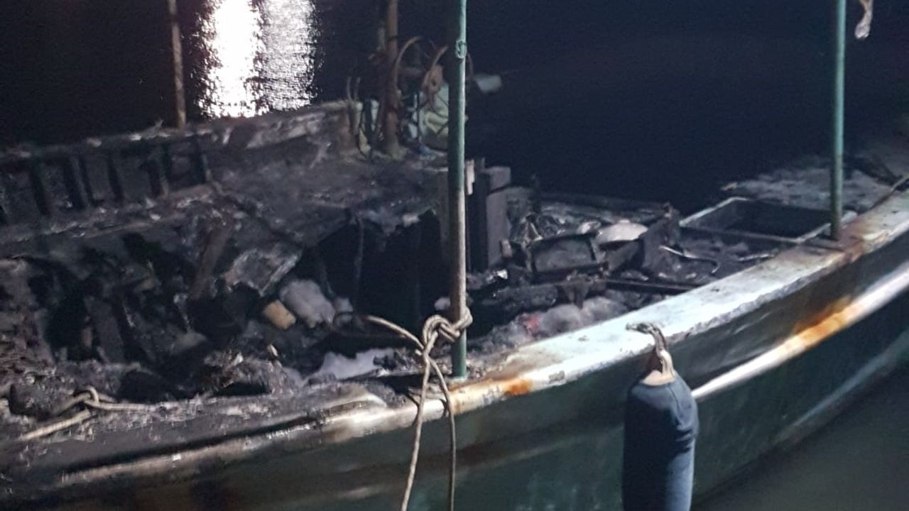Antalya Balıkçı Barınağı'nda şiddetli yağış sırasında düşen yıldırım nedeniyle balıkçı barınağında çıkan yangında 3 tekne küle döndü.