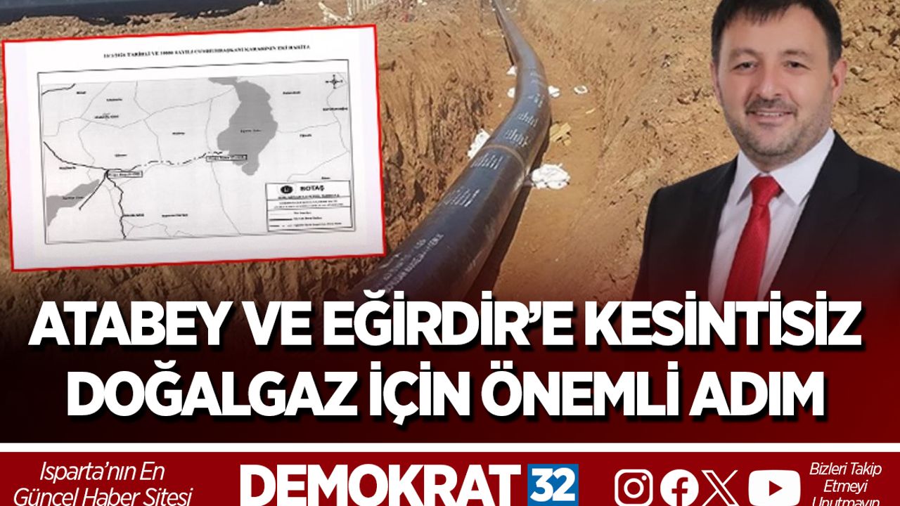 AK Parti Isparta Milletvekili Osman Zabun, Atabey ve Eğirdir ilçeleri başta olmak üzere bölgedeki diğer yerleşim birimleri açısından büyük önem taşıyan doğalgaz boru hattının ihalesine ilişkin müjdeyi 2025 yılının son gününde kamuoyu ile paylaşmıştı. Resmî Gazete’de yayımlanan acele kamulaştırma kararıyla birlikte, projenin hayata geçirilmesi sürecinde önemli bir eşik aşılmış oldu.