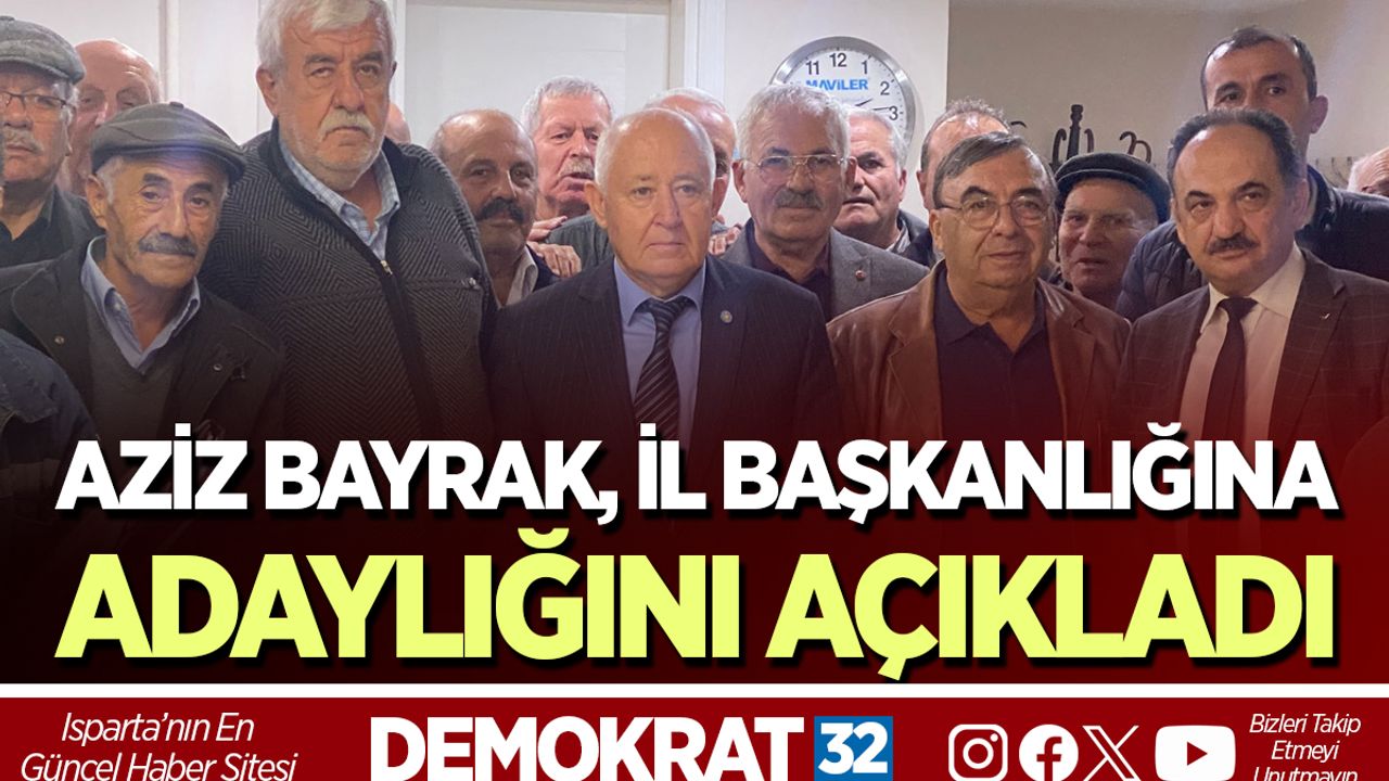 Aziz Bayrak, bugün saat 14.00’te İYİ Parti İl Başkanlığı binasında yaptığı basın açıklamasında şu ifadelere yer verdi: “Ömrüm boyunca bu vatani borcumu ödemek, milletime hizmet etmek için çalıştım. Şimdi Türkiye’nin kritik bir döneminde, Sayın Müsavat Dervişoğlu’nun liderliğinde İYİ Parti Isparta İl Başkanlığına aday oluyorum. Çalışma arkadaşlarıma, parti üyelerimize ve kıymetli delegelerimize olan inancımla bu göreve talip oluyorum. Amacımız birikimimiz ve inancımızla Isparta’mıza daha iyi hizmet etmek, partimizi hak ettiği yere taşımaktır. İl başkanlığı seçiminin hayırlara vesile olmasını diliyor, tüm aday arkadaşlarıma başarılar temenni ediyorum. Rabbim herkesin yar ve yardımcısı olsun.” İYİ Parti Isparta İl Başkanlığı kongresi, partililerin yoğun katılımıyla 26 Ekim Pazar günü yapılacak.