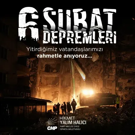 6 Şubat büyük depreminin yıldönümünde açıklama yapan CHP Isparta Milletvekili Hikmet Yalım Halıcı, Hatay, Kahramanmaraş, Adıyaman merkezli depremde 53 bin 537 insanı kaybettiğimizi söyleyerek “Bunlar resmi sayılar. Gerçek sayı ise daha fazla. Çok büyük utançlar yaşadık, çok büyük skandallara ve suçlara şahit olduk. Üç gün boyunca iktidar yardıma gitmedi. 1999 depreminde binlerce insanı kurtaran asker kışlasında bekletildi. Vatandaşlar enkaz altında yerlerini konum olarak internetten paylaşırken bunlar bant daraltmasına gitti. Bu nedenle ölümler arttı. Kızılay'ın çadır sattığı ortaya çıktı. İmar barışları ve rant anlayışı ile bugünlere geldik. Hala ders ve önlem alınmıyor” dedi.