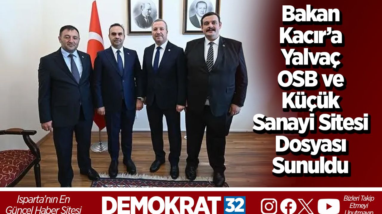 Sanayi ve Teknoloji Bakanı Kacır’ın, ilçede üretimi ve istihdamı artıracak projelere destek sözü verdiği öğrenildi. Görüşmeye ilişkin açıklamada bulunan Mustafa Kodal, “Yalvaç’ımızın geleceği için büyük önem taşıyan projeler konusunda Sayın Bakanımızın desteklerini görmek bizleri mutlu etti. Hedefimiz; üreten, büyüyen ve istihdam sağlayan bir Yalvaç” ifadelerini kullandı.