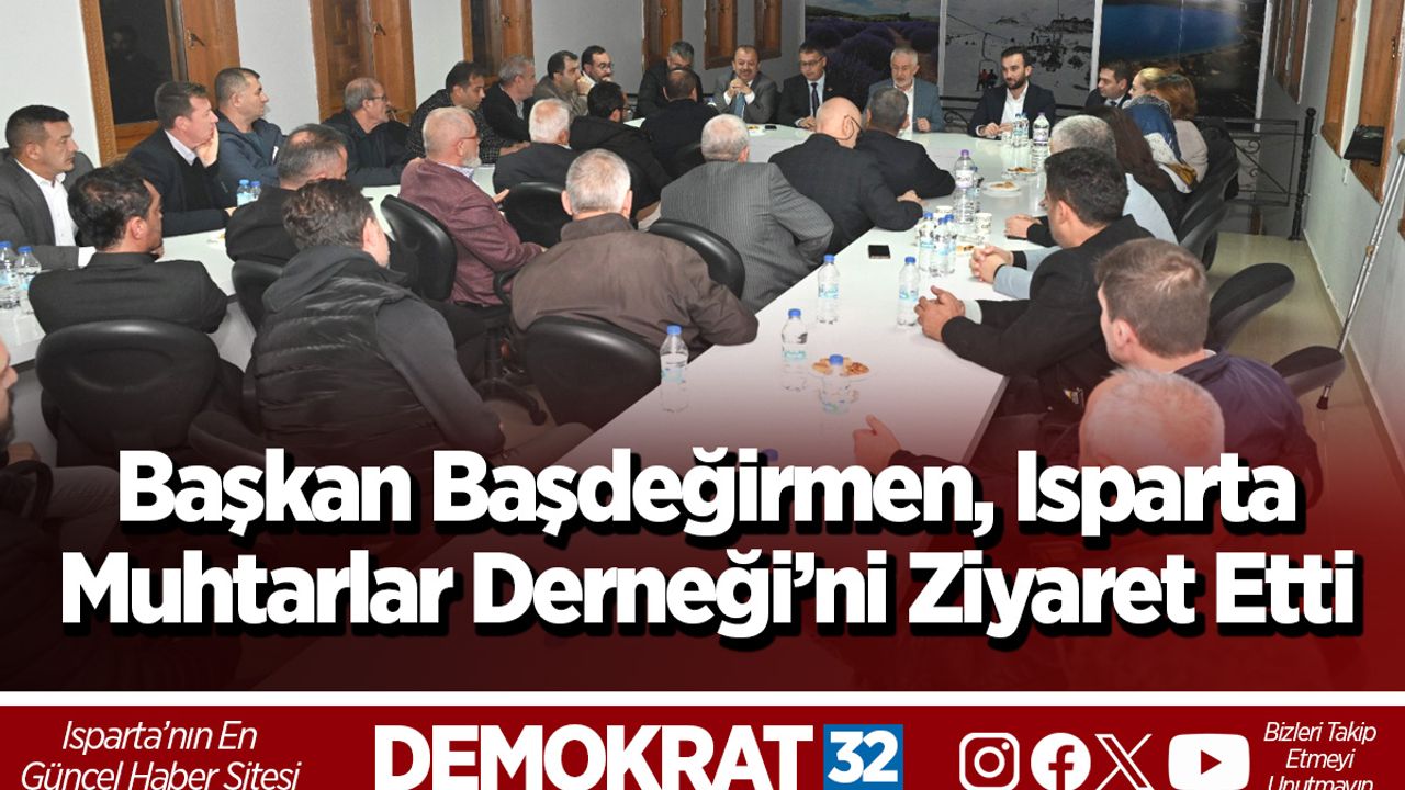 Isparta Belediye Başkanı Şükrü Başdeğirmen ve beraberindeki belediye başkan yardımcıları, 19 Ekim Muhtarlar günü nedeniyle Isparta Muhtarlar Derneği’ni ziyaret etti. Ziyarette konuşan Başkan Başdeğirmen, muhtarlarla diyaloglarının her zaman açık olduğunu söyledi. Isparta Muhtarlar Derneği hizmet binası ile ilgili de konuşan Başkan Başdeğirmen, “Amacımız Fuat Uyar başkanımız gibi Isparta’ya eserler bırakmaktır” dedi.