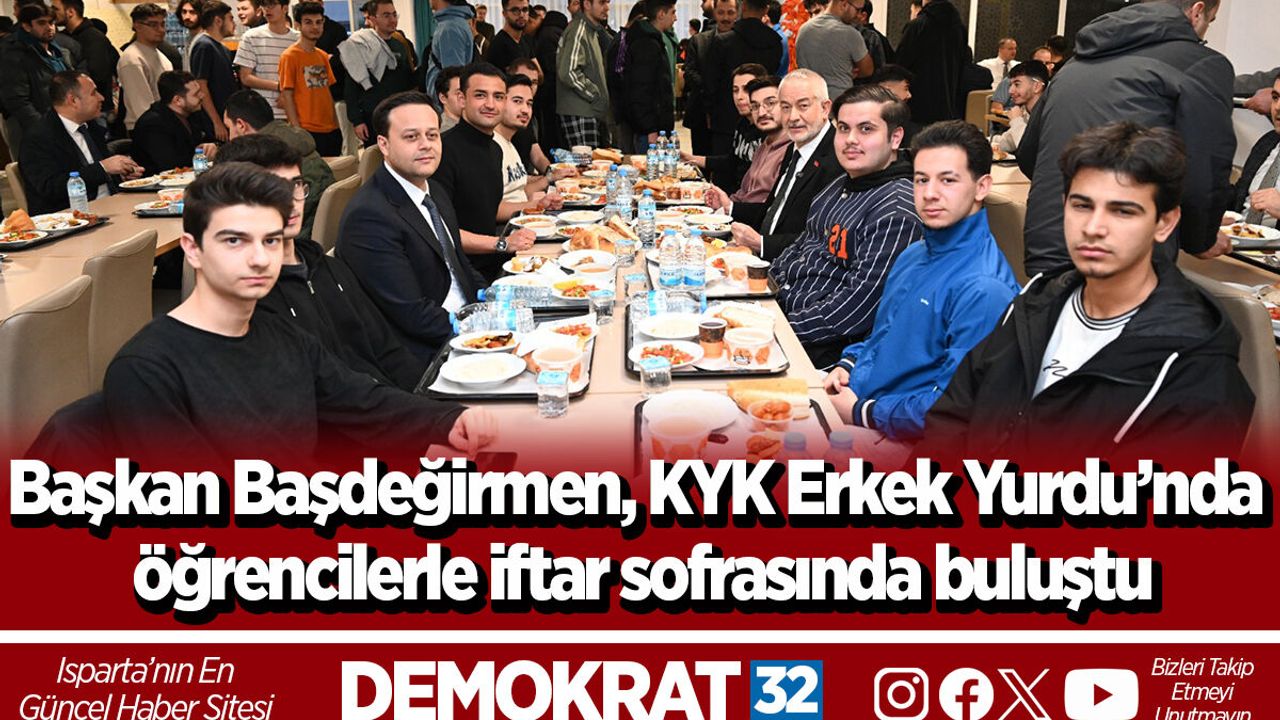 Isparta Belediye Başkanı Şükrü Başdeğirmen, Ramazan ayı dolayısıyla Murat Hüdavendigar KYK Erkek Yurdu’nda kalan öğrencilerle iftar programında bir araya geldi. Gençlerle aynı sofrayı paylaşan Başkan Başdeğirmen, iftar öncesinde yemek dağıtımına da eşlik ederek öğrencilerle sohbet etti.