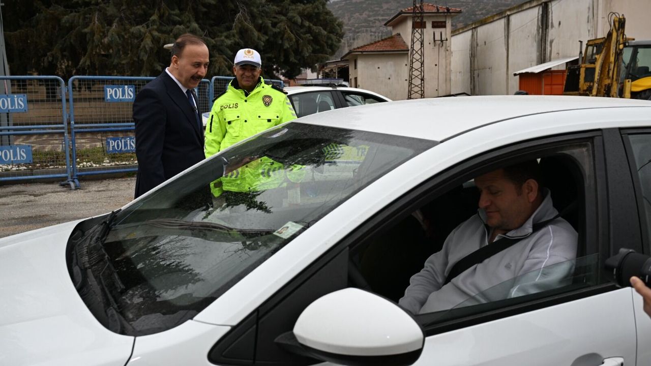 Durdurulan araçlardaki vatandaşlara şeker ve kolonya ikram eden Vali Erin, özellikle emniyet kemeri kullanımı ve hız limitlerine riayet edilmesi hususunda uyarılarda bulundu.