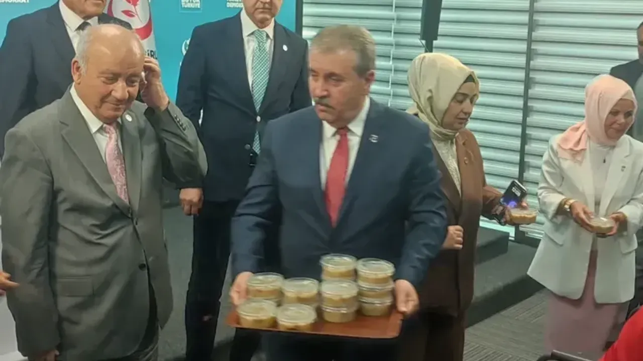 Destici, basın toplantısının ardından Muharrem ayının sembolü olan aşureleri misafirlere dağıttı ve il kadın kolları başkanlarıyla hatıra fotoğrafı çektirdi.