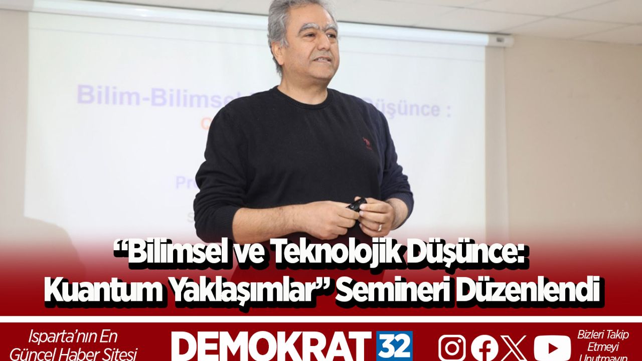 Süleyman Demirel Üniversitesi İnsan ve Toplum Bilimleri Fakültesi tarafından Prof. Dr. İskender Akkurt’un konuşmacı olarak katıldığı “Bilimsel-Teknolojik Düşünce: Kuantum Yaklaşımlar” başlıklı bir seminer düzenledi. Türker Taşaltın Konferans Salonu’nda gerçekleştirilen etkinlik, ders niteliğinde bir anlatımla ilerleyerek öğrencilerin ilgisini topladı.