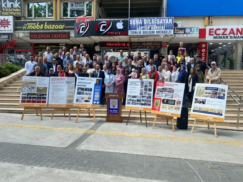 27 Mayıs 1960 darbesinin yıl dönümü dolayısıyla AK Parti tarafından Kaymakkapı Meydanı’nda bir basın açıklaması gerçekleştirildi. Açıklama, AK Parti Isparta İl Başkanlığı İnsan Hakları Komisyonu Başkanı Avukat Hatice Çetin Gücüyener tarafından yapıldı. Programa AK Parti Merkez İlçe Başkanı Halil İbrahim Güleç, Belediye Başkan Yardımcıları Musa Macit ve Özler Erdoğan ile belediye meclis üyeleri ve çok sayıda partili katıldı.