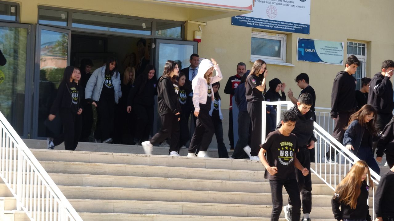 13 Ekim Dünya Afet Risklerinin Azaltılması Günü çerçevesinde, Burdur'da 'deprem tahliye tatbikatı' gerçekleştirildi. Tatbikat esnasında öğrencilerin oyunculuğu gerçeği aratmadı.