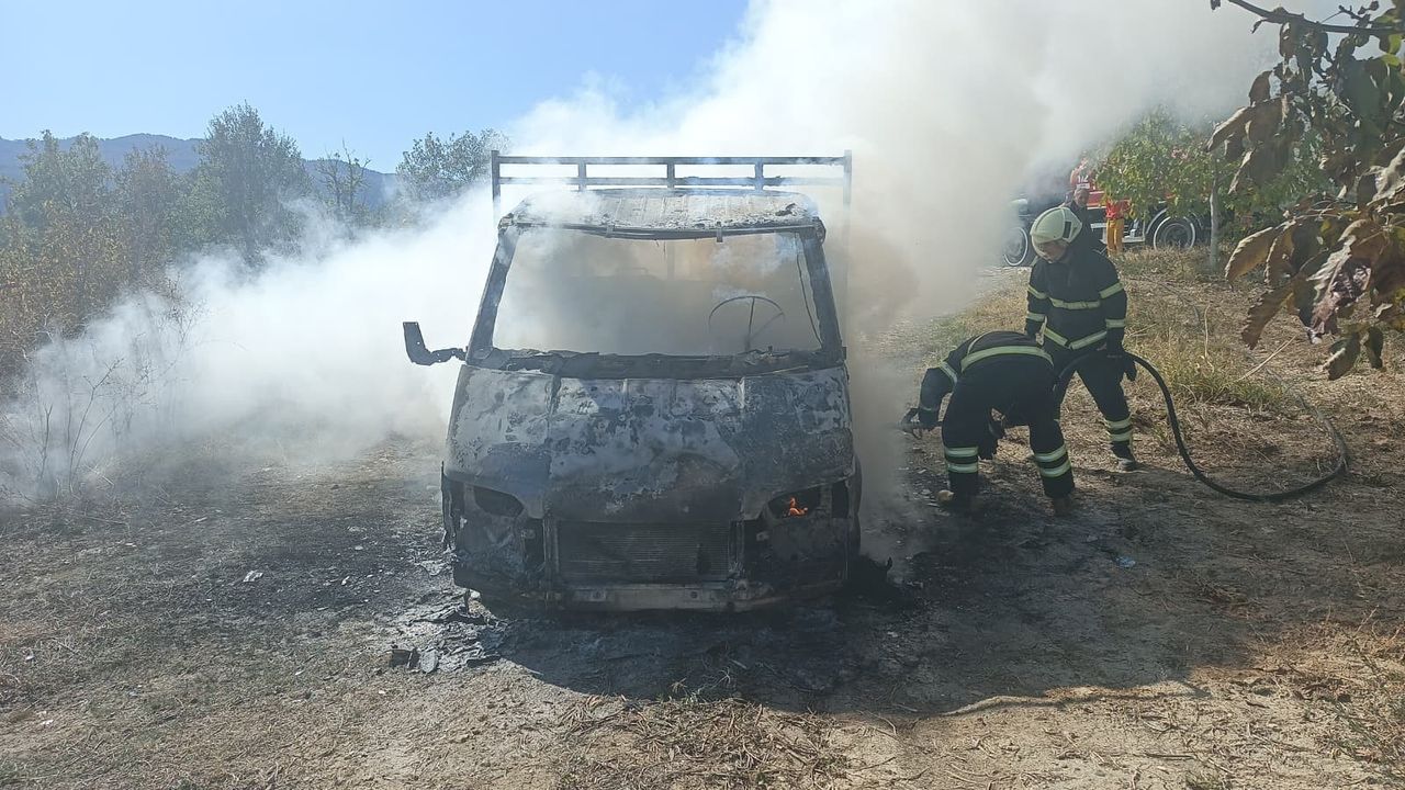 Burdur'un Bucak ilçesinde seyir halindeyken alev alan kamyonet kullanılmaz hale geldi.