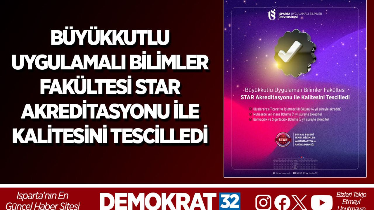Isparta Uygulamalı Bilimler Üniversitesi (ISUBÜ) Büyükkutlu Uygulamalı Bilimler Fakültesi, eğitim kalitesini ulusal ve uluslararası standartlara taşıma yönündeki kararlı adımlarına bir yenisini daha ekledi. Büyükkutlu Uygulamalı Bilimler Fakültesi’nin üç lisans programı, Sosyal Beşeri ve Temel Bilimler Akreditasyon ve Rating Derneği (STAR) tarafından başarıyla akredite edildi.