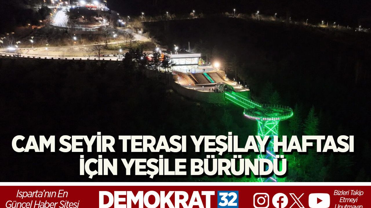 Her yıl 1-7 Mart tarihleri arasında Yeşilay Haftası kutlanıyor. Isparta Belediyesi de Yeşilay Haftası kapsamında Kirazlıdere Sosyal Tesisleri önünde bulunan cam seyir terası, bu haftaya özgü yeşil renkle ışıklandırdı. Cam seyir teras hafta boyunca Yeşilay’ın simgesi olan yeşil renk ile aydınlatılarak farkındalık oluşturdu. Akşam saatlerinde yeşile bürünen teras hem vatandaşların ilgisini çekti hem de bağımlılıkla mücadele konusunda toplumsal duyarlılığa dikkat çekildi.