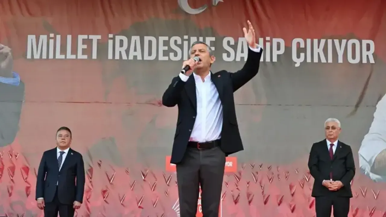 Saraçhane'den başlayan sürecin tüm Türkiye'ye yayıldığını söyleyen Özel, "Ey Erdoğan, ben milletim. Adayımı bırak, sandığımı getir. Cesaretin varsa sandıkta karşıma çık" diye konuştu. Asgari ücrete ara zam istediklerini de yineleyen Özel, "Asgari ücrete ara zam hakkımız, bunu söke söke alacağız" ifadelerini kullandı.