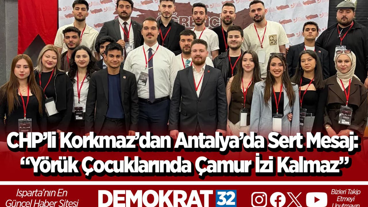 Cumhuriyet Halk Partisi (CHP) Isparta Gençlik Kolları İl Başkanı Musa Korkmaz, Antalya’da düzenlenen Batı Akdeniz Öğrenci Çalıştayı’nda yaptığı konuşmada, gençliğin sorunları, eğitim politikaları ve güncel siyasi gelişmelere ilişkin dikkat çeken açıklamalarda bulundu.