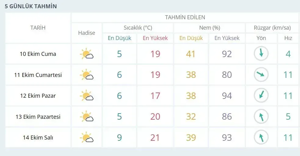 Kent merkezinde hava durumu gün içinde parçalı bulutlu seyrederken, güneşin etkisini kaybetmesiyle sıcaklıklarda belirgin bir düşüş yaşandı. Gündüz saatlerinde 18 derece civarında ölçülen hava sıcaklığı, sabah erken saatlerde 5 derecelere kadar geriledi.