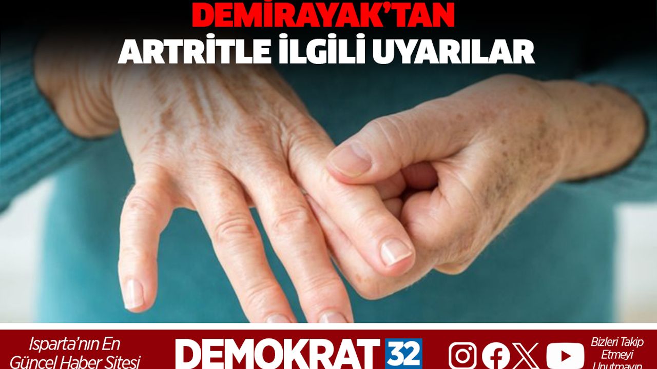 Yalvaç Devlet Hastanesi Ortopedi ve Travmatoloji Uzmanı Op. Dr. Engin Demirayak, 12 Ekim Dünya Artrit Günü” olması nedeniyle “Artrit ile ilgili vatandaşlarımızın bilinçlenmesi ve farkındalık kazanmaları için bilgiler verdi.