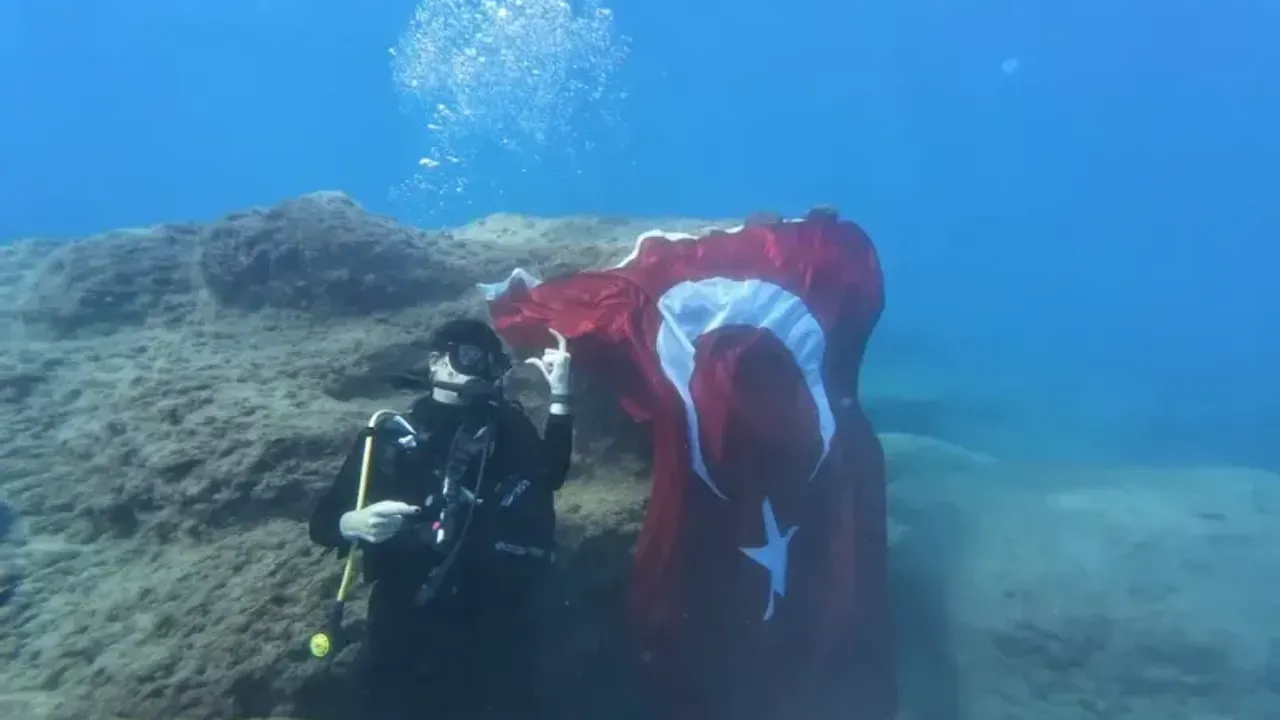 Demiryürek, su altında 10 metrelik dalış gerçekleştirdiklerini, işaret diliyle 30 Ağustos Zafer Bayramı'nı kutlayıp İstiklal Marşı'nı okuduklarını ve 2 dev Türk Bayrağını denizde dalgalandırdıklarını söyledi.