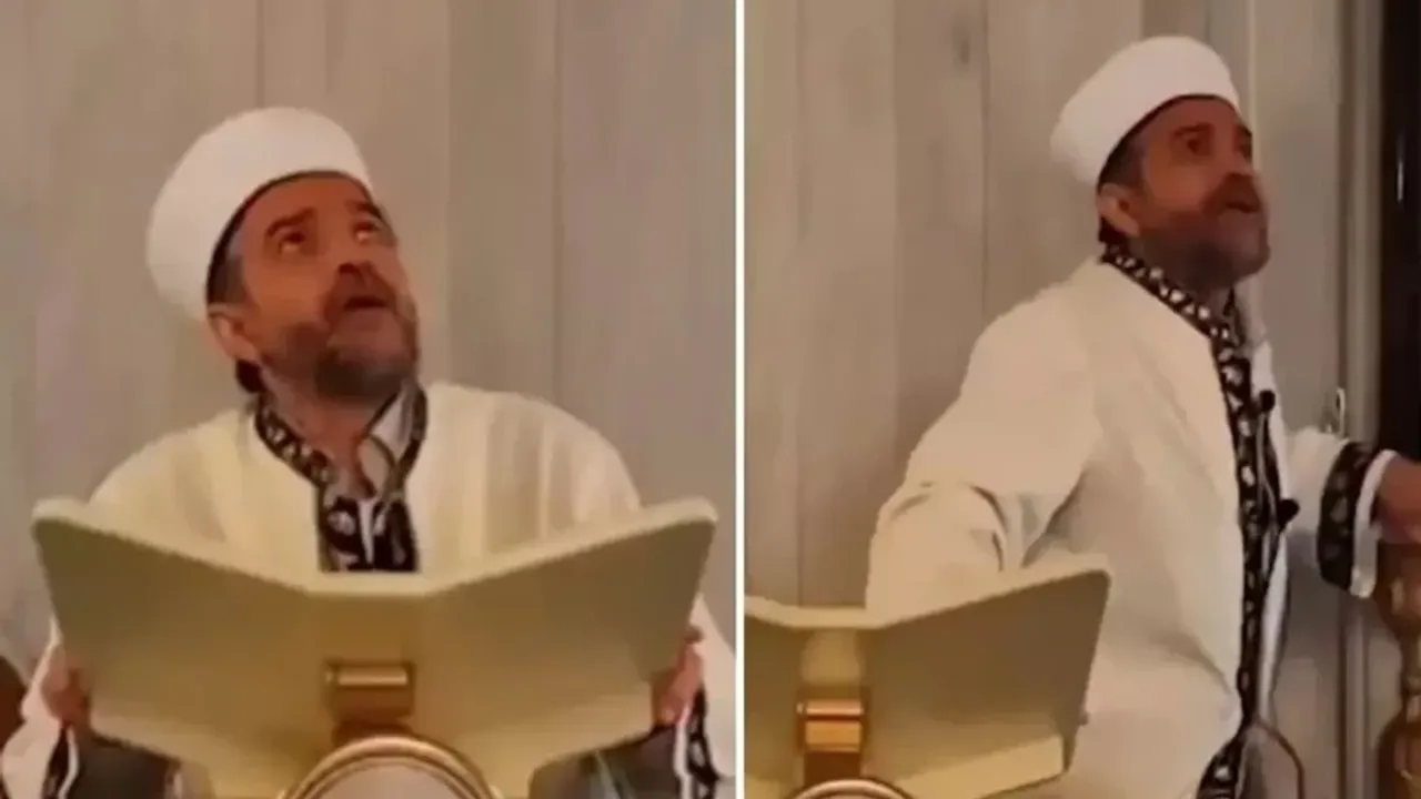 Görüntülerde, imamın ilk şoku atlatmaya çalışırken bir yandan çevresine baktığı, ne yapacağına karar veremediği anlar açıkça görülüyor.