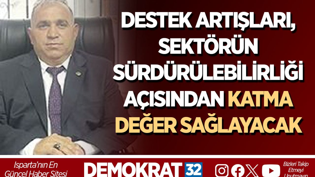 Isparta Koyun Keçi Yetiştiricileri Birliği Başkanı Hüseyin Sarıdaş, hayvancılık destekleri kapsamında kuzu/oğlak desteklerinin yüzde 50 oranında artırılmasını memnuniyetle karşıladıklarını belirterek, " Destek artışları, sektörün sürdürülebilirliği açısından katma değer sağlayacak." dedi.