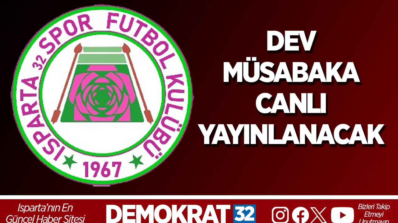 Ispartaspor ile Aliağa Futbol A.Ş takımları arasında Isparta’da oynanacak olan derbi maçının naklen yayınlanacağı kanal belli oldu. Buna göre söz konusu maç Sıfır TV ekranlarından canlı olarak yayınlanacak.