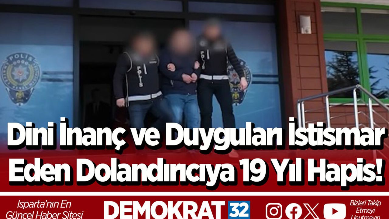 Konuyla ilgili olarak Isparta İl Emniyet Müdürlüğü’nden şu açıklama yapıldı: “Dini inanç ve duyguların istismar edilmesi suretiyle nitelikli dolandırıcılık suçundan 19 yıl 5 ay hapis cezası ile aranan şahıs, 25 Mart 2026 tarihinde Kaçakçılık ve Organize Suçlarla Mücadele Şube Müdürlüğü ekiplerimizce yakalanarak gözaltına alınmış, 26 Mart 2026 tarihinde sevk edildiği adli makamlarca tutuklanarak Ceza İnfaz Kurumuna teslim edilmiştir. Suç ve suçlularla mücadelemiz kararlılıkla devam edecektir” denildi.