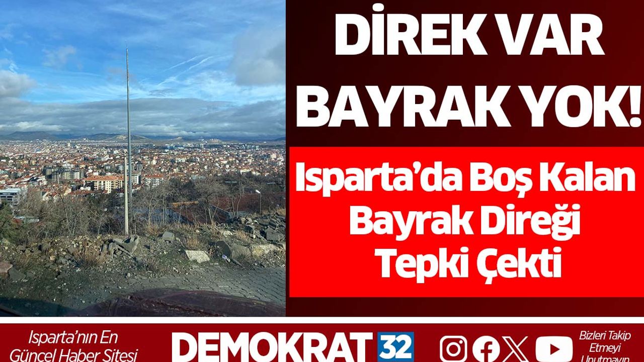 Isparta’nın Sidre Tepesi’ne giden yol üzerinde bulunan bir bayrak direğinde, daha önce dalgalanan Türk bayrağının yerinde olmadığı görüldü. Direğin boş durması vatandaşların tepkisine neden oldu. Çevrede yaşayan ve yoldan geçen vatandaşlar, direğin bir an önce Türk bayrağı ile donatılmasını talep etti.