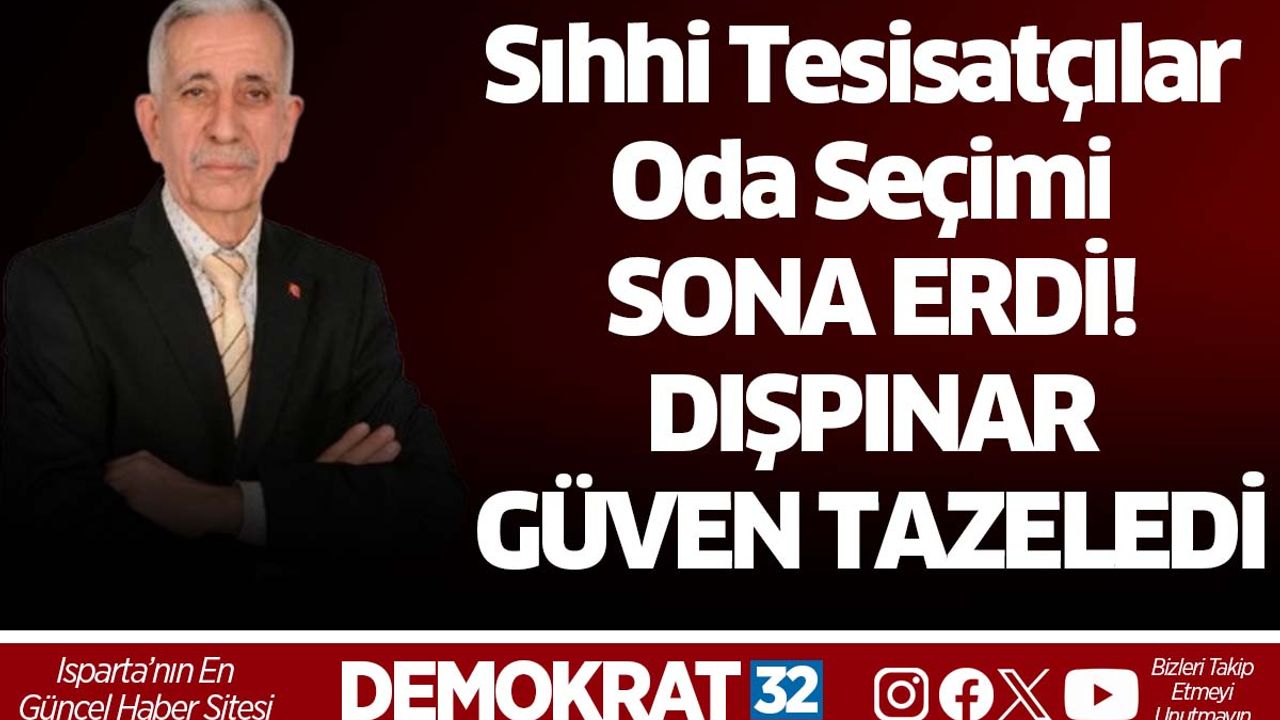 İrfan Arıkboğa ile Halil İbrahim Dışpınar’ın yarıştığı seçimlerde Dışpınar 160, İrfan Arıkboğa ise 116 oy aldı. Seçim sonrası bir açıklama yapan Başkan Dışpınar, “Bugün, Isparta Sıhhi Tesisatçılar, Kaloriferciler ve Fotoğrafçılar Esnaf ve Sanatkârlar Odası Başkanlık seçimlerinde bana duyduğunuz güven ve desteğinizle başkanlık görevine layık görüldüm. Öncelikle tüm üyelerime, bana oy veren ve vermeyen her bir esnaf kardeşime teşekkür ederim. Bu sonuç, sadece benim değil, hepimizin başarısıdır. Hepinizin desteğiyle, Isparta'nın esnaf ve sanatkârlar camiasını daha parlak bir geleceğe taşımak için gece gündüz demeden çalışacağım. Benim için her biriniz çok kıymetlisiniz ve her zaman yanınızda olacağım” dedi.