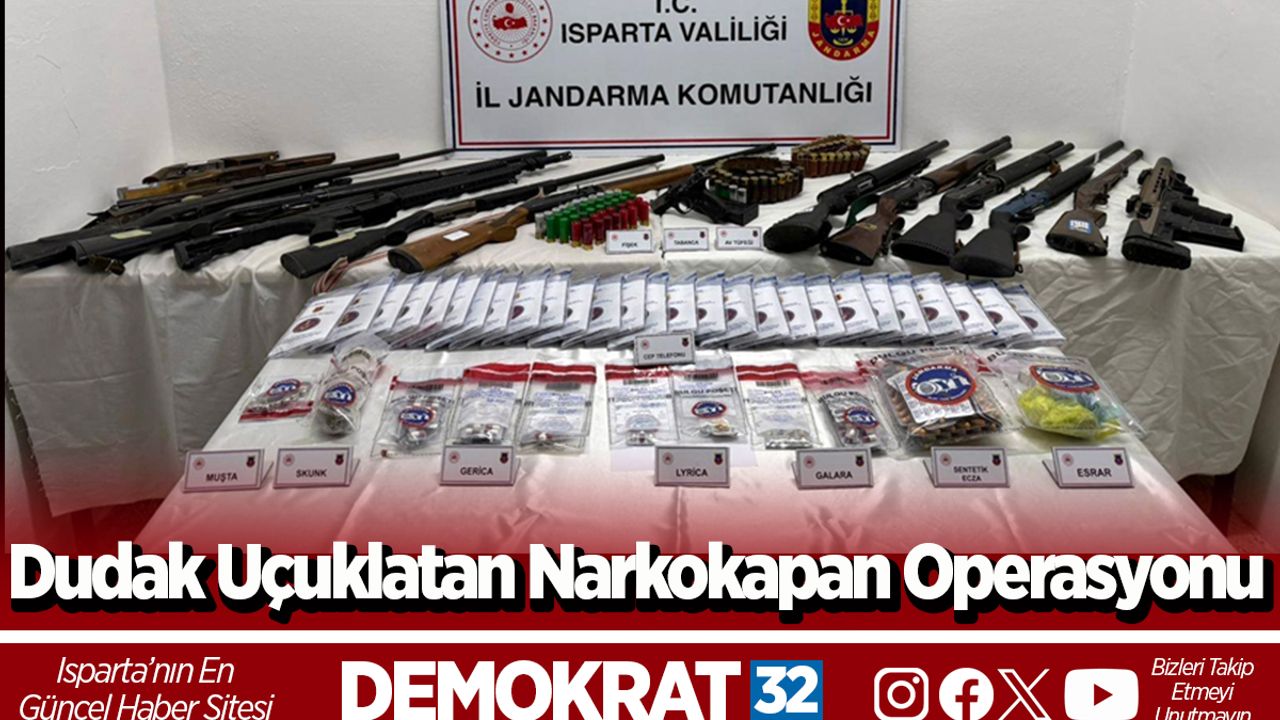 Konuyla ilgili olarak Isparta İl Jandarma Komutanlığı’ndan yapılan bilgilendirmede: “Isparta İl Jandarma Komutanlığınca uyuşturucu tacirlerine yönelik 04.02.2026 günü icra edilen NARKOKAPAN operasyonunda; (53) şüpheli ile birlikte (400) adet uyuşturucu içerikli hap, (150) gram kubar esrar maddesi, (150) gram kenevir tohumu, (1) adet ruhsatsız tabanca, (15) adet tabanca fişeği, (12) adet ruhsatsız av tüfeği, (10) adet şase numarası kazınmış çalıntı motosiklet, (1) adet hacizli yakalamalı otomobil ele geçirilmiş olup, şüpheliler ile ilgili adli işlemler devam etmektedir. Isparta İl Jandarma Komutanlığınca, uyuşturucu ile mücadele kapsamında yürütülen operasyonel faaliyetlere artan bir azim ve kararlılıkla devam edilmektedir” denildi.