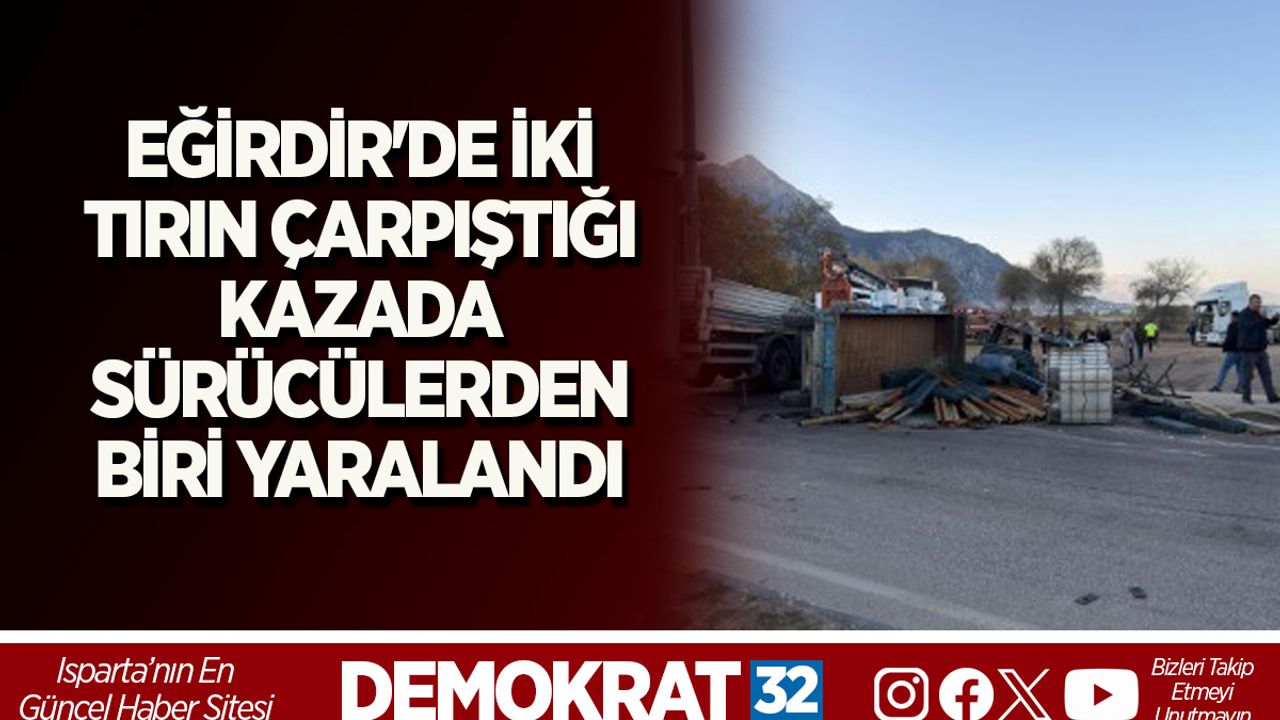 Isparta'nın Eğirdir ilçesi Sanayi Kavşağı'nda iki tırın çarpışması sonucu meydana gelen kazada 38 yaşındaki sürücü yaralanırken, dorsedeki traktör ve sondaj malzemeleri yola savruldu.