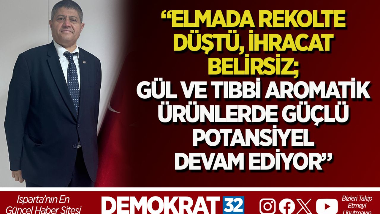 Isparta Ziraat Odası Başkanı Mustahattin Can Selçuk, elma ve gül ürünlerinde ihracat potansiyeline ilişkin değerlendirmelerde bulundu. Bu yıl elma üretiminde yaşanan don ve dolu olaylarının rekolteyi ciddi şekilde etkilediğini belirten Selçuk, geçen yıl yaklaşık 1 milyon 250 bin ton olan üretimin bu yıl 800 bin ton civarına gerilediğini ifade etti.