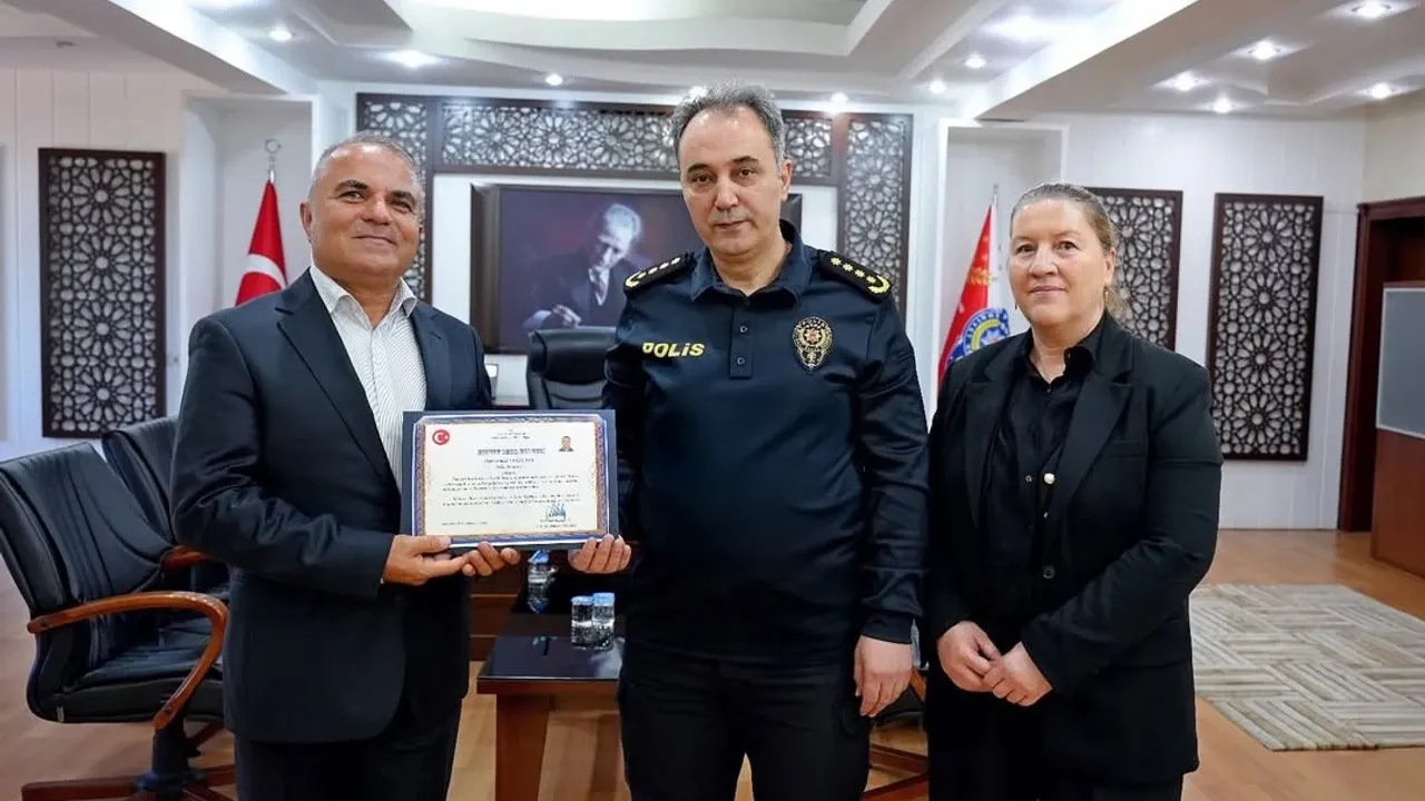 Isparta İl Emniyet Müdürlüğünde görev yaparken emekliye ayrılan polis memuru İsmail Sarıkaya’ya İl Emniyet Müdürü Erdem Bildirici tarafından Hizmet Onur Belgesi takdim edildi.