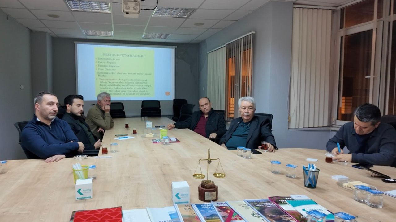 Isparta’nın tarımsal üretim ve özellikle meyvecilik açısından ülkemizin en önemli merkezlerinden biri olduğunu dile getiren Karabulut, “Sulama sorunu en önemli gündemlerimizden biri. Bu toplantıda kuraklığa daha çok dayanan ve mevcut su kaynaklarını olabildiğince az kullanacak ürünler konusunda bir fikir çalışması yapmak istedik. Elbette bu konuda birçok tarımsal ürün değerlendirilebilir. Bu konuda üretilecek fikirler ve uygulamalarla doğru yolu bulmamız gerekiyor. Biz, toplantılarımızda bu konuyla ilgili ele alınabilecek çeşitli ürünleri gündemimize alıp tartışıyoruz. Bugünkü toplantımızda misafirimiz Prof. Dr. Adnan Nurhan YILDIRIM hocamızın da çalışma alanı olması nedeniyle kestane ve hünnap meyvelerini ilimiz potansiyeli açısından hem üretim bağlamında hem de ticari bağlamda artıları ve eksilerini ele almak istedik. Hocamıza kıymetli sunumları için çok teşekkür ediyorum.” şeklinde konuştu.