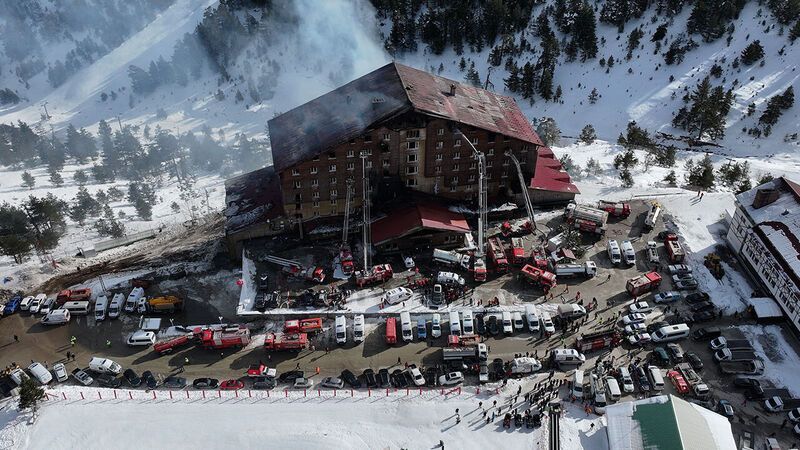 Dün Bolu Kartalkaya'da Grand Kartal Otel'de saat 03.27'deki yangın ihbarının ardından hızla olay yerine gelen ekipler, yangını kontrol altına almak için müdahaleye başladı.