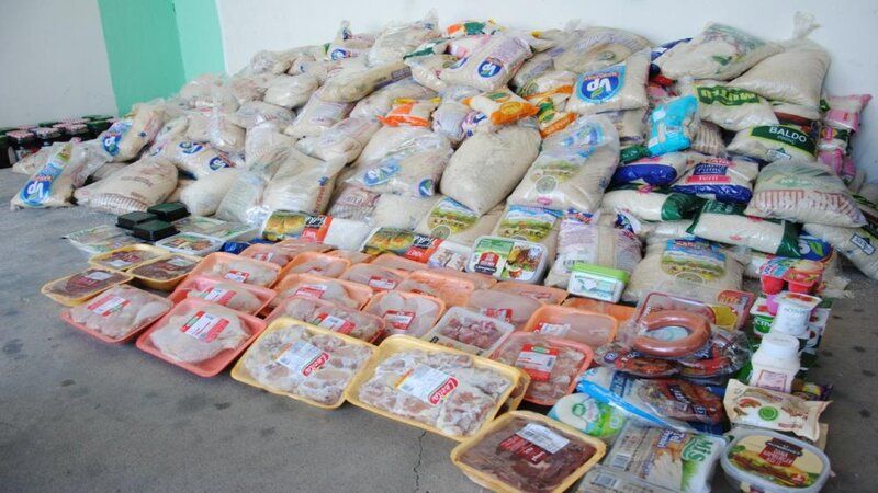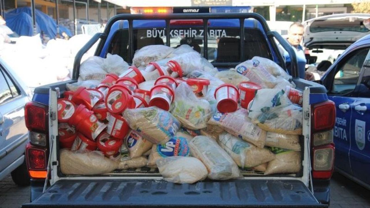 Toplamda 1.500 kilogram pirinç, 650 kilogram reçel, 200 kilogram çikolata, 200 kilogram domates salçası, 100 kilogram bebek bisküvisi ve 100 kilogram çay olmak üzere binlerce paket gıda ürünü toplandı.