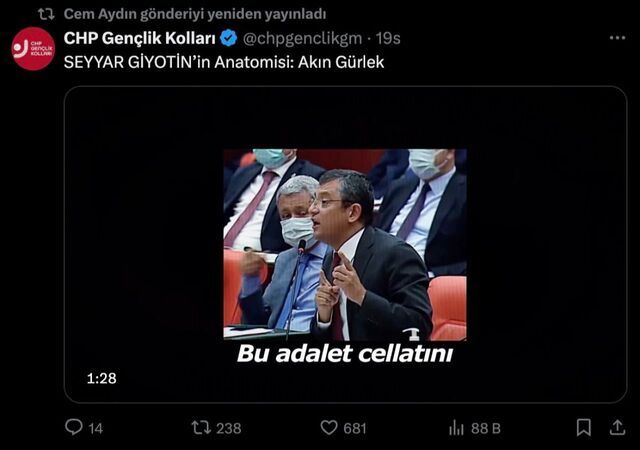 "Gençlik Kolları Genel Başkanımız Cem Aydın, Saray’ın kullanışlı aparatı Akın Gürlek’le ilgili sosyal medya paylaşımı nedeniyle ifadeye çağrılmış. Anadolu’da bir söz vardır: Zulmün artsın ki tez zeval bulasın! Ne yaparsanız yapın, korkutamayacak, sindiremeyeceksiniz"