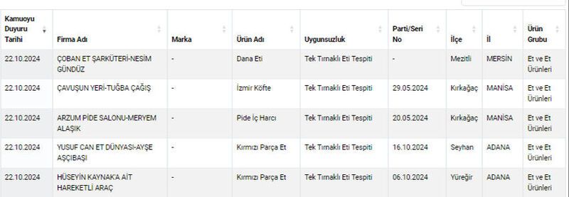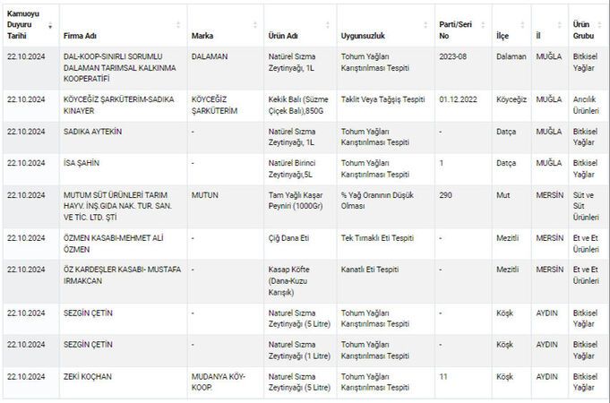 Gıdada hile yapan yeni firmalar açıklandı,