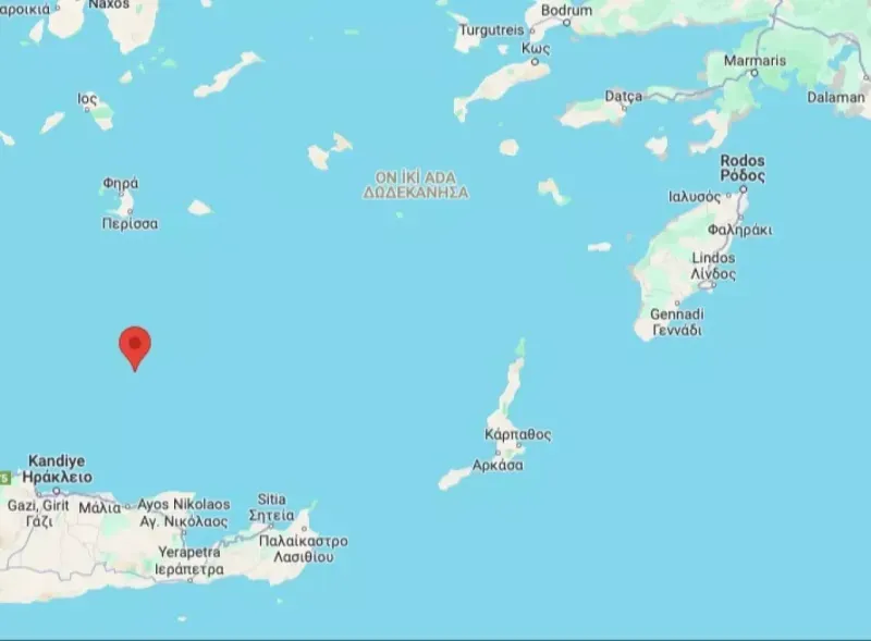 Girit Adası açıklarında saat 05.15'te 3.1 büyüklüğünde bir deprem meydana geldi. Kandilli'den gelen bilgilere göre sarsıntı yerin 5.0 kilometre derinliğinde kaydedildi.
